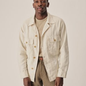 The quintessential short sleeve button-up in a classic fit inspired by a 1940s uniform shirt from our archives. Cut from a lightweight cotton linen blend with a breathable open weave. Details include a perfectly-proportioned point collar, a single chest pocket, and a curved hem.