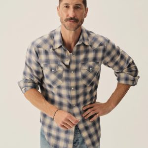 The El Camino Pant is a western-inspired trouser crafted from brushed Japanese cotton twill, built with 1960s-era frogmouth front pockets, waist tab closures, and a split waistband. Modeled after polished rodeo styles, the leg runs slim and straight from a mid-high rise down to a boot-ready opening.