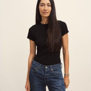 Cut from a heavyweight 310 GSM cotton, this slightly oversized, boxy crewneck tee has a straight hemline that hits right at your natural waist. Double-washed for a soft, smooth texture and consistent fit.