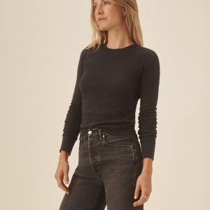 Crafted from a superfine, exceptionally soft cotton rib, this long sleeve is a go-to for effortless wear. It has a slim fit, a wide crewneck, cuffs, and a hip-length hem. Garment dyed and washed with softener for a lived-in feel.