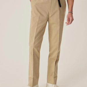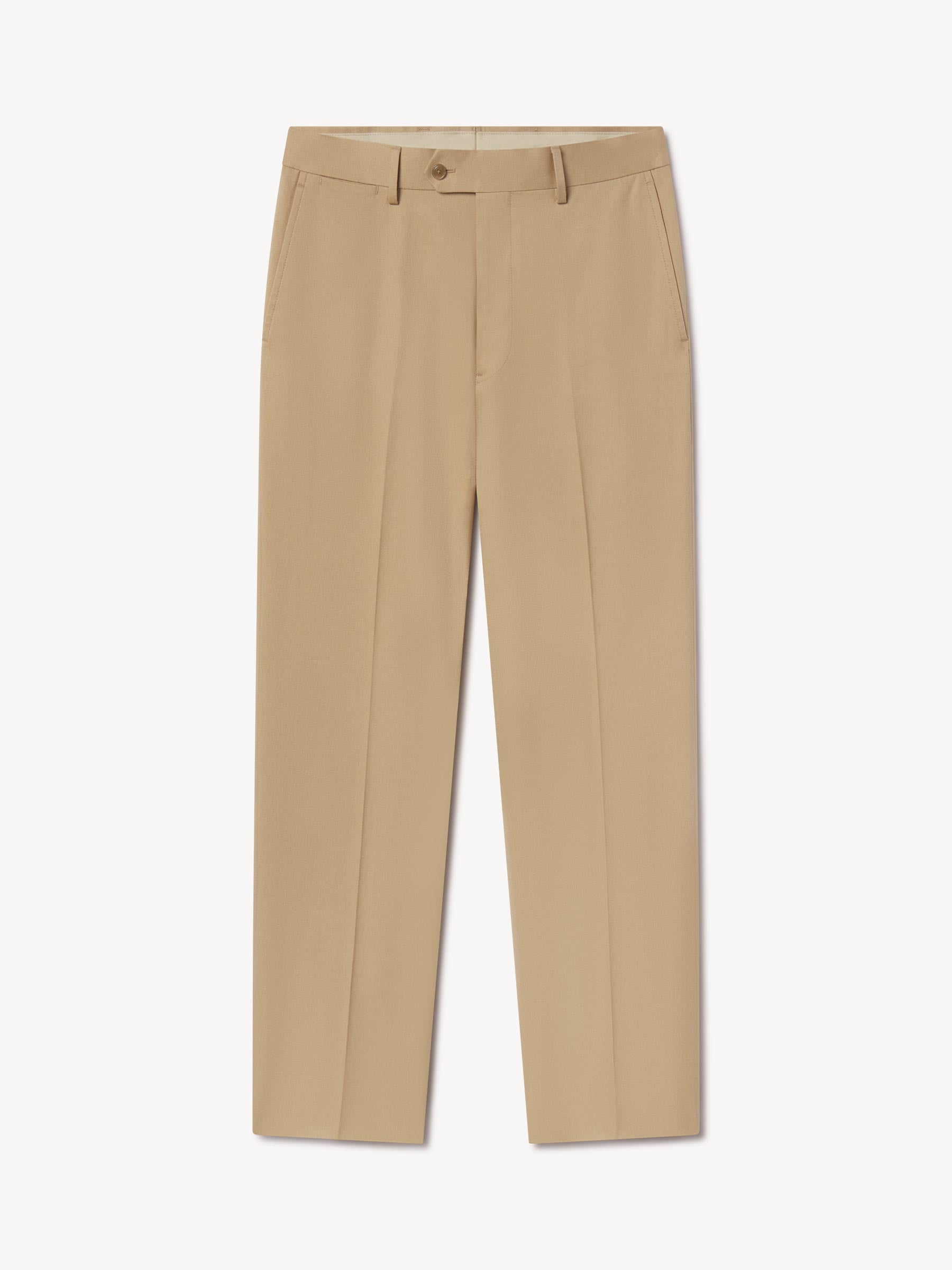 Tailored tab-waist trouser inspired by traditional Ivy style tailoring. Cut from an Italian cotton twill ideal for spring and summer, providing lightweight structure with a uniform appearance. Features a flat front, buttoned tab waist and hook and eye closure. Slash side pockets, on-seam coin pocket, two welt back pockets. Front lined through the knee for comfort. 35″ unfinished hem. Pair with our Graduate Blazer for a full suit.
