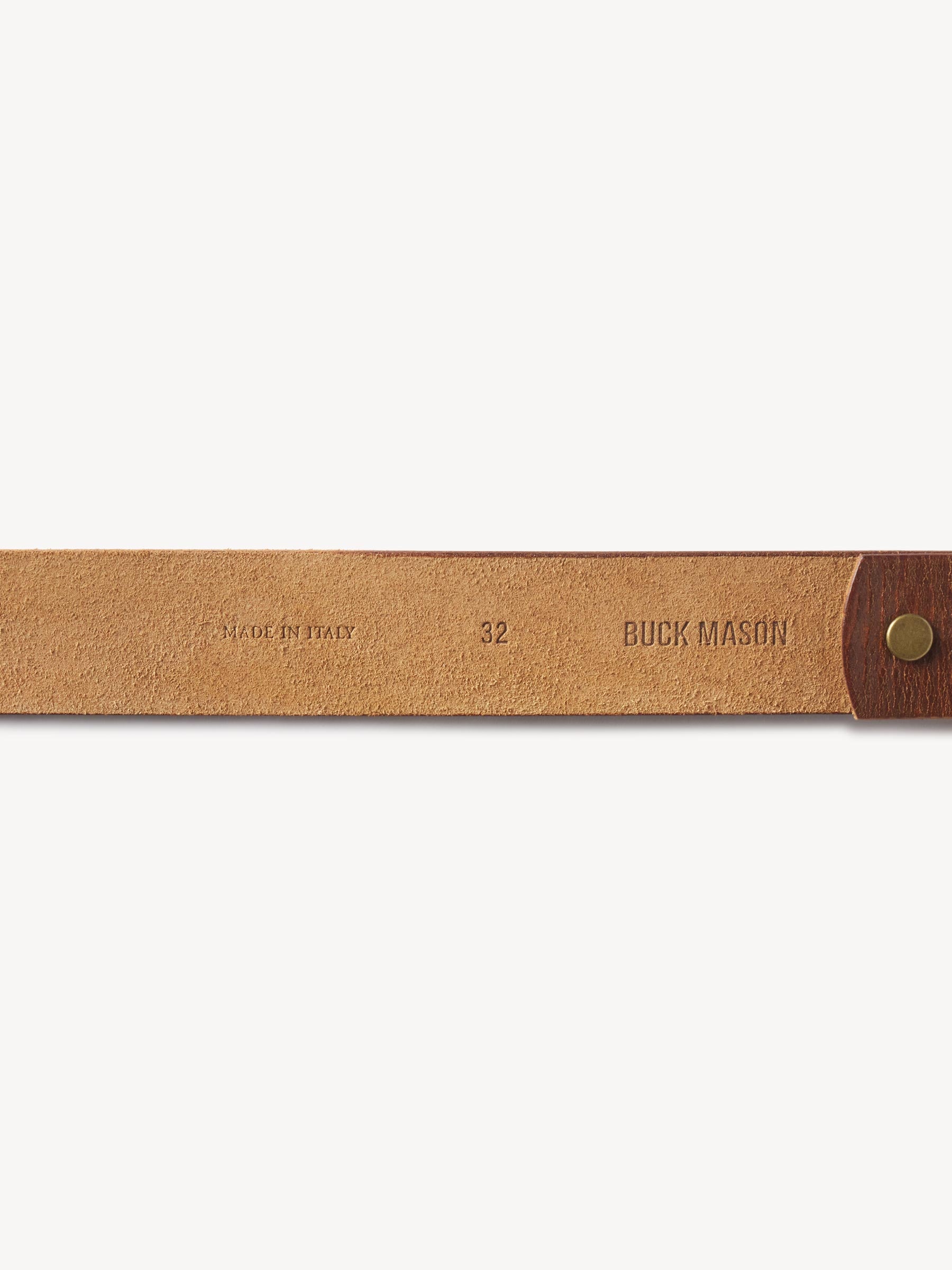 An American classic with military roots. Inspired by garrison belts worn in service uniforms, it’s built from durable, full-grain leather with a subtle, distressed finish. Designed with a snap closure and a removable buckle for easy customization. The hardware is intentionally unfinished and unlacquered, meant to develop a rich patina over time.