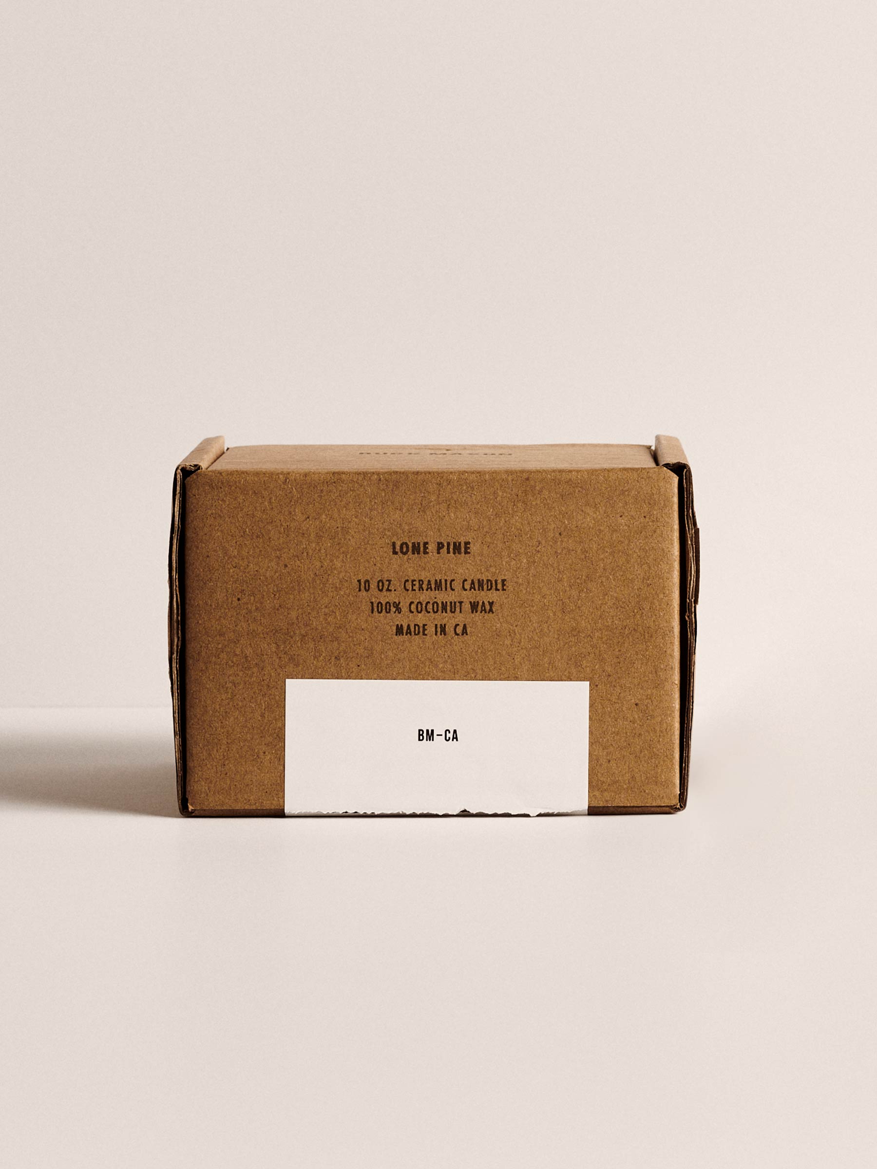 Hand-poured 10 oz. ceramic candle made from 100% coconut wax in our signature scent inspired by Lone Pine, California. A warm, woodsy, and classic scent with notes of atlas cedar, charred hickory, musk, and amber.