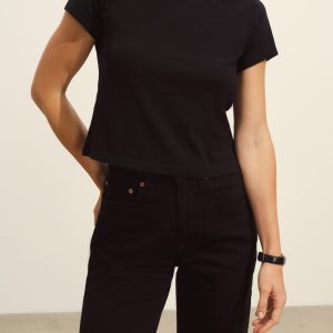 Boxy short sleeve crewneck tee with a straight hem. Cut from 120 GSM Supima cotton. Constructed with rib neck binding and double-needle cover-stitching at the hem. Garment washed for a lived-in feel.