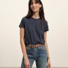 Boxy short sleeve crewneck tee with a straight hem. Cut from 120 GSM Supima cotton. Constructed with rib neck binding and double-needle cover-stitching at the hem. Garment washed for a lived-in feel.