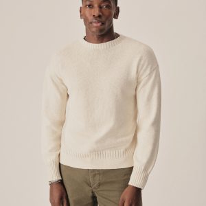 In the spirit of traditional fishermen knits, our Seafarer Guernsey is constructed with a boxy, jersey knit cotton body that features a shallow sleeve cap, side venting at the hem, and 2×2 ribbing at sleeves and cuffs.
