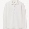 Classic fit polo sweater in a 7 gauge half cardigan rib knit from our homespun yarn-dyed cotton. Features a 3-button rib center front placket with nacre buttons and a rib collar designed to lay flat. Constructed with hand-linked seams and racking stitch detailing at the cuffs.