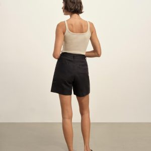 Slim fit ribbed scoop neck tank cut from 295 GSM stretch cotton that holds its shape. 2×2 rib structure—two rows of rib stitch, two rows of jersey stitch—is offset by contrast 1×1 rib at the neck. Constructed with coverstitching throughout and flatlock stitching at the side seams. Garment washed for a lived-in feel.