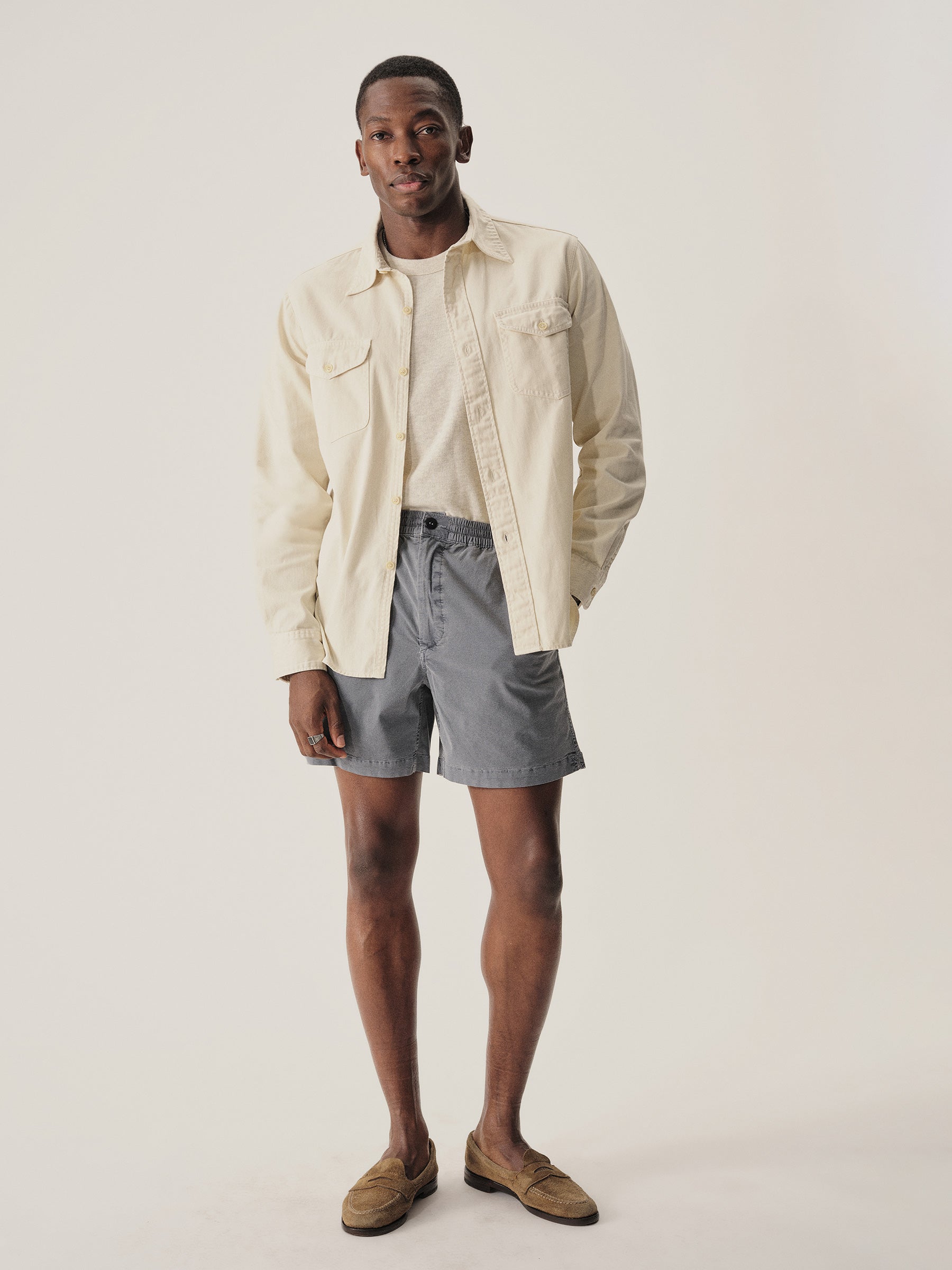 Inspired by a 1940s workshirt from our archives, this is the quintessential midcentury American workshirt. It has a classic fit, two flap chest pockets, and a curved hem. It is cut from a sturdy midweight cotton twill that will soften with every wear. Washed for a lived-in feel.