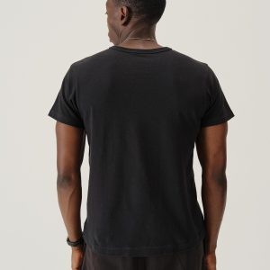 Cut from a midweight 200 GSM USA-grown cotton, developed, milled, and sewn at BM Knitting Mills in Mohnton, PA. This classic fit crewneck tee has a straight hemline, bound neck and screen-printed label for comfort. Constructed with a split-needle cover stitch at shoulders and armholes. Double-washed for a soft, smooth texture and consistent fit.