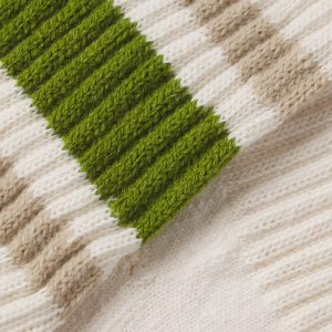 Thick sport socks made in the USA from American-grown cotton. Inspired by—and knit on the same style of machines as—original sport socks from the 80s. Details include a 2+1 banded stripe and a soft-cushioned terry footbed.